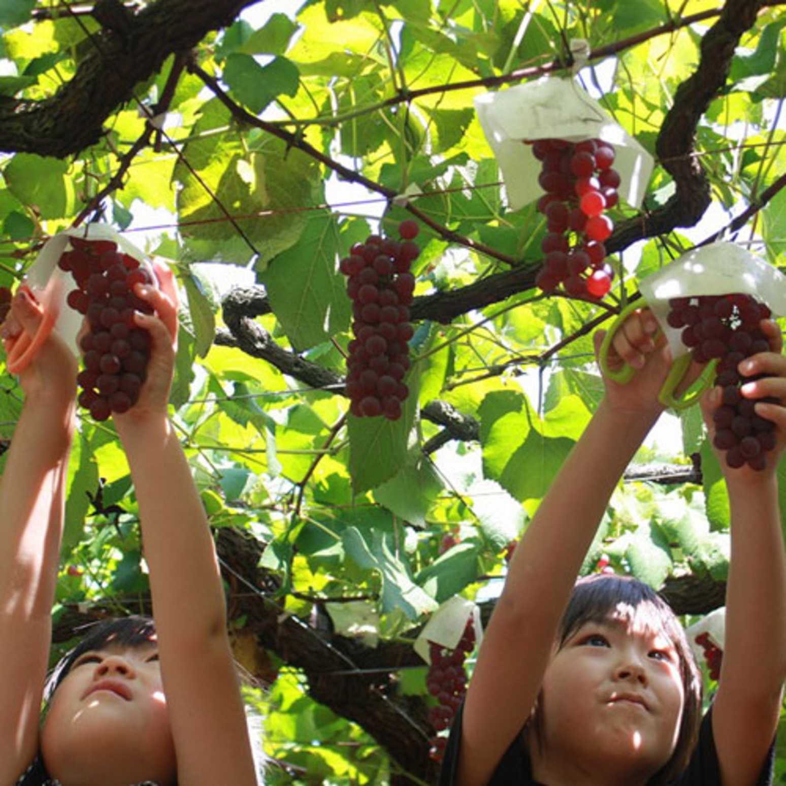 石和エリアは果物王国・山梨の中心地。いちご狩りは冬〜春(1月〜5月頃)、ぶどう狩りは夏〜秋(8月〜10月頃)が楽しめます。ホテルから車で5〜26分圏内に複数の農園があり、子どもが大好きな「その場でもぎたてを食べる体験」ができます。シャトレーゼのアイスやスイーツと合わせて、山梨の甘いものを一日中満喫できるプランが組めます。